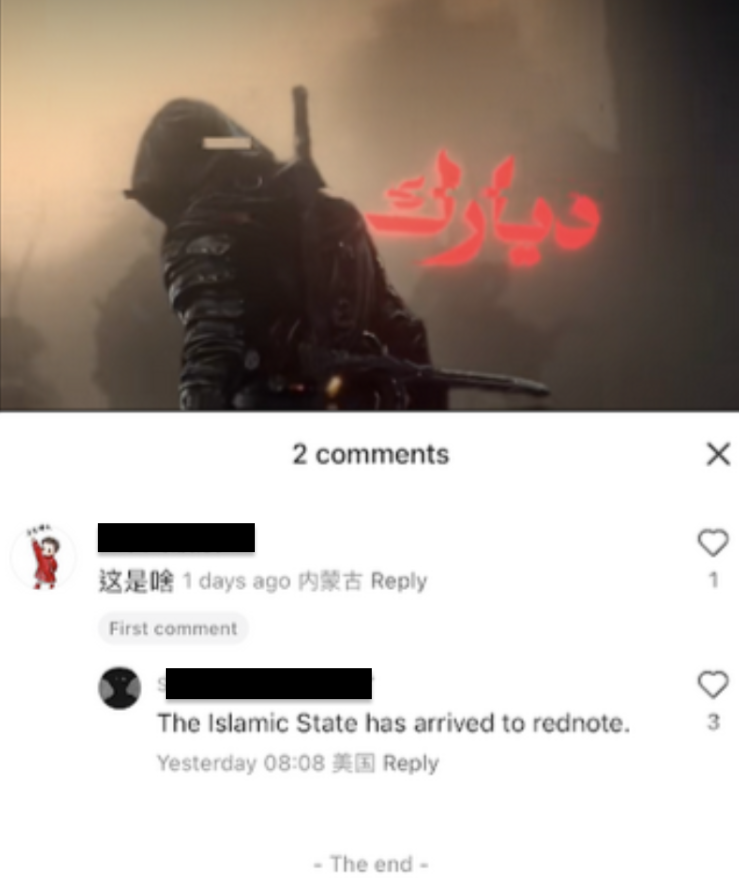 Figure 3. Islamic State posts and supporter accounts on XiaoHongShu.