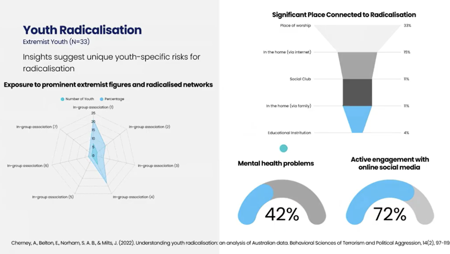 Figure 1: Cherney, A., Belton, E., & Narham S.A.B., & Milts, J (2022) ‘Understanding youth radicalisation: An analysis of Australian Data’, Behavorial Sciences of Terrorism and Political Aggression, 14 (2), 97-119.