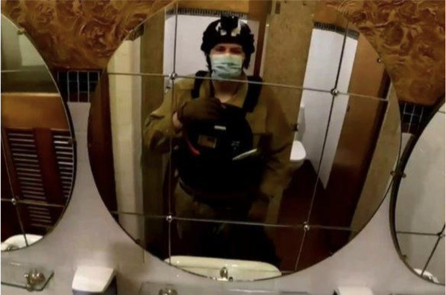 Figure 2: An image of Jordan Patten in his military-style outfit taken from the livestream of his alleged incident. Source: https://www.theage.com.au/national/nsw/teen-charged-with-terrorism-offence-after-sharing-manifesto-carrying-knives-20240627-p5jp65.html