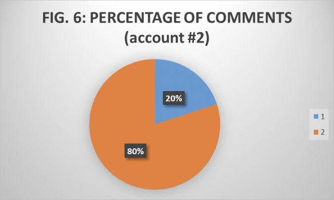 Fig. 6: Percentage of comments (account #2): 0-5 comments (1) = 20%; 5-10 comments (2) = 80%. Created by the author.