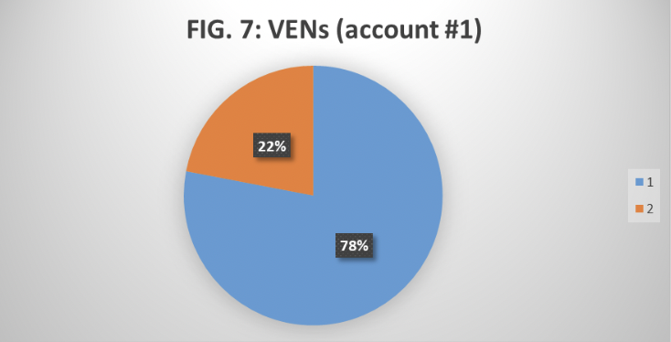 Fig. 7: VENs (account #1): Yes (1) = 78%; No (2) = 22%. Created by the author.