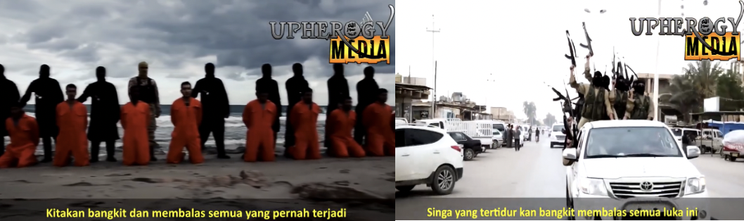 Figures 3 and 4: An analysis of one nasheed, Ya Ummatku (O My Muslim Community), illustrates how visual imagery is used to reinforce IS master narratives and maximise emotional appeal.