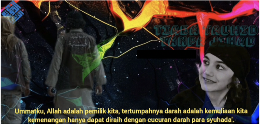 Figure 9: An example of how MN’s administrator accommodates the feedback of in-group members. This frame of the nasheed translates to read: “the mujahid who achieves excellence will sow seeds of honour far and wide”.