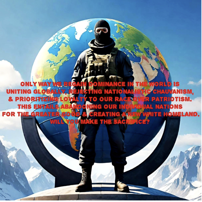 The account of Rinaldo Nazarro plays a central role in the group’s online presence. He publishes ideological propaganda alongside content addressing his personal background, in which he denies allegations about links to the Russian Government. He frequently shares videos discussing ideological aspects of white supremacism and the positioning of The Base in relation to other far-right and nationalist movements, rejecting nationalism, patriotism, and historical restorationism in favour of a transnational “pro-White” framework, summarised in his statement: “Our race must be our nation now.” In this context, he advances the idea of “White Globalism,” arguing that the survival of the white population requires a global response to what is framed as ‘replacement’ and ‘genocide’. He also rejects the concept of remigration embraced by several far-right groups, arguing that Western countries are no longer recoverable due to immigration and that only a “real white revolution” can achieve the group’s objectives.